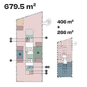 Näkymät tiloista ovat upeat ja B-talon kuudennen kerroksen tiloihin on mahdollista yhdistää kattoterassi.